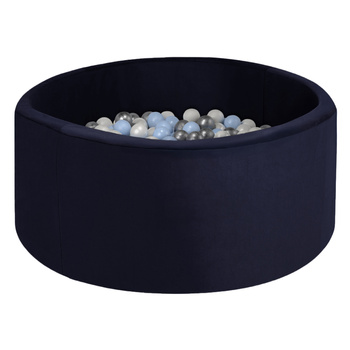 Misioo Ballpool, grau, rund, Samt, 90x30, 200 Bälle: hellblau, silber, perlmutt