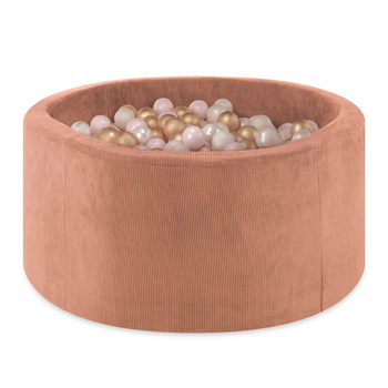 Misioo Bällebad, beige, rund, Premium-Cord, 90x30, 200 Bälle: perlmutt, hellrosa, gold