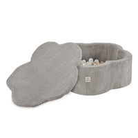 Misioo Bällebad, hellgrau, rund, Kord, 90x30, 200 Bälle: Perle, hellblau, silber
