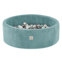 MISIOO Bällebad, blau, rund, Premium-Cord, 90x30, 200 Bälle: pearl, pearl mint, silber