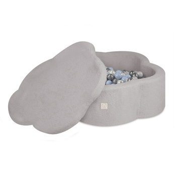 MISIOO Bällebad, 95x30, grau, Premium Cord, Floral Fun Zone, 200 Bälle: perle, silber, hellblau