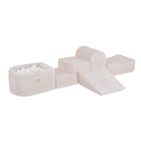 Misioo Plac zabaw Mini (+basen i 100 piłek ), kremowy, boucle premium (perłowe i złote)